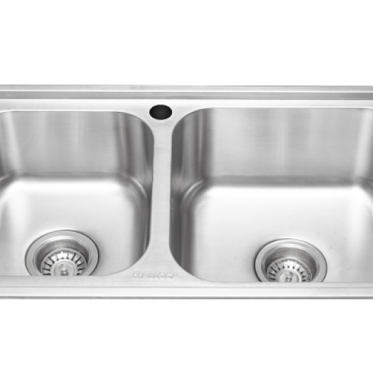 Mẫu chậu rửa chén bát 02 hố chậu : 01 hố lớn + 01 hố trung, chính hãng MALLOCA
